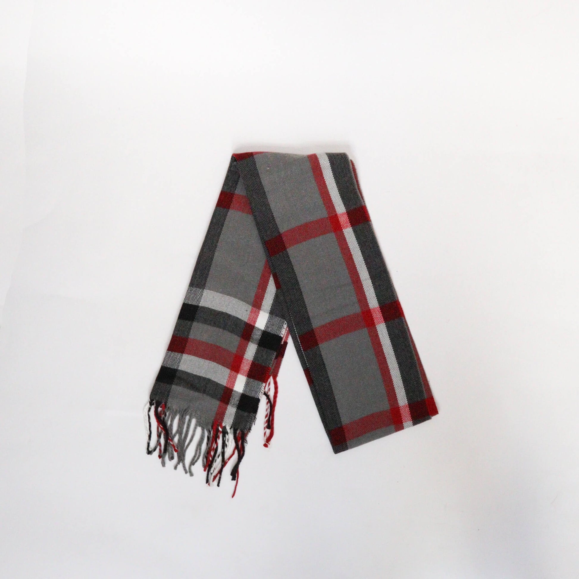 - Color: Gris y rojo, cuadros